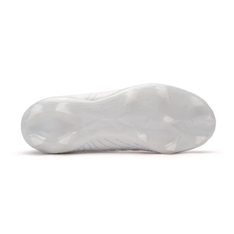 Bota de fútbol Predator Accuracy. 3 FG para niños. Botas sintéticas con cordones para utilizar en campos de hierba natural. Botas de gama baja en color White-Grey Two-Preloved Blue.