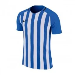 Camiseta de manga corta para niño Nike de la línea Striped Division, que presenta un diseño caraterístico con franjas verticales de dos colores.