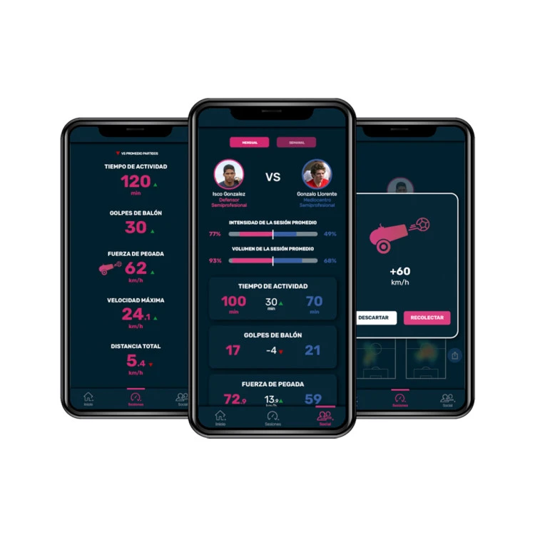 - De fútbol: Golpes de balón, Fuerza de golpeo, mapa de calor y traslado de balón
